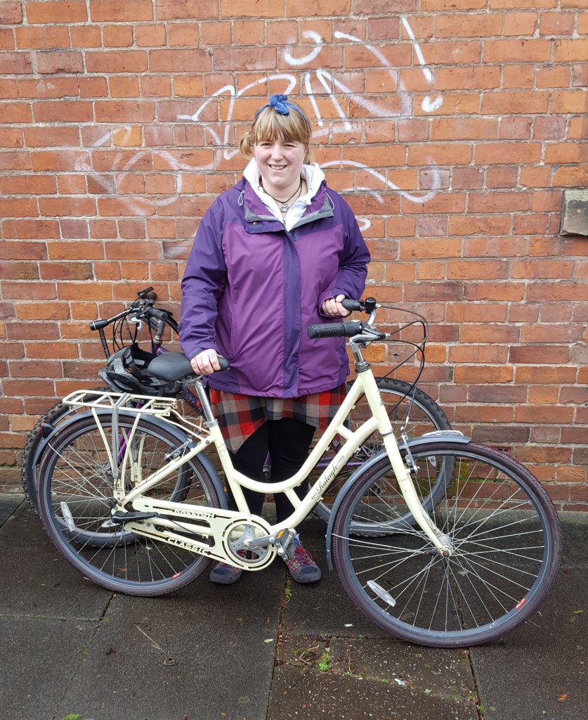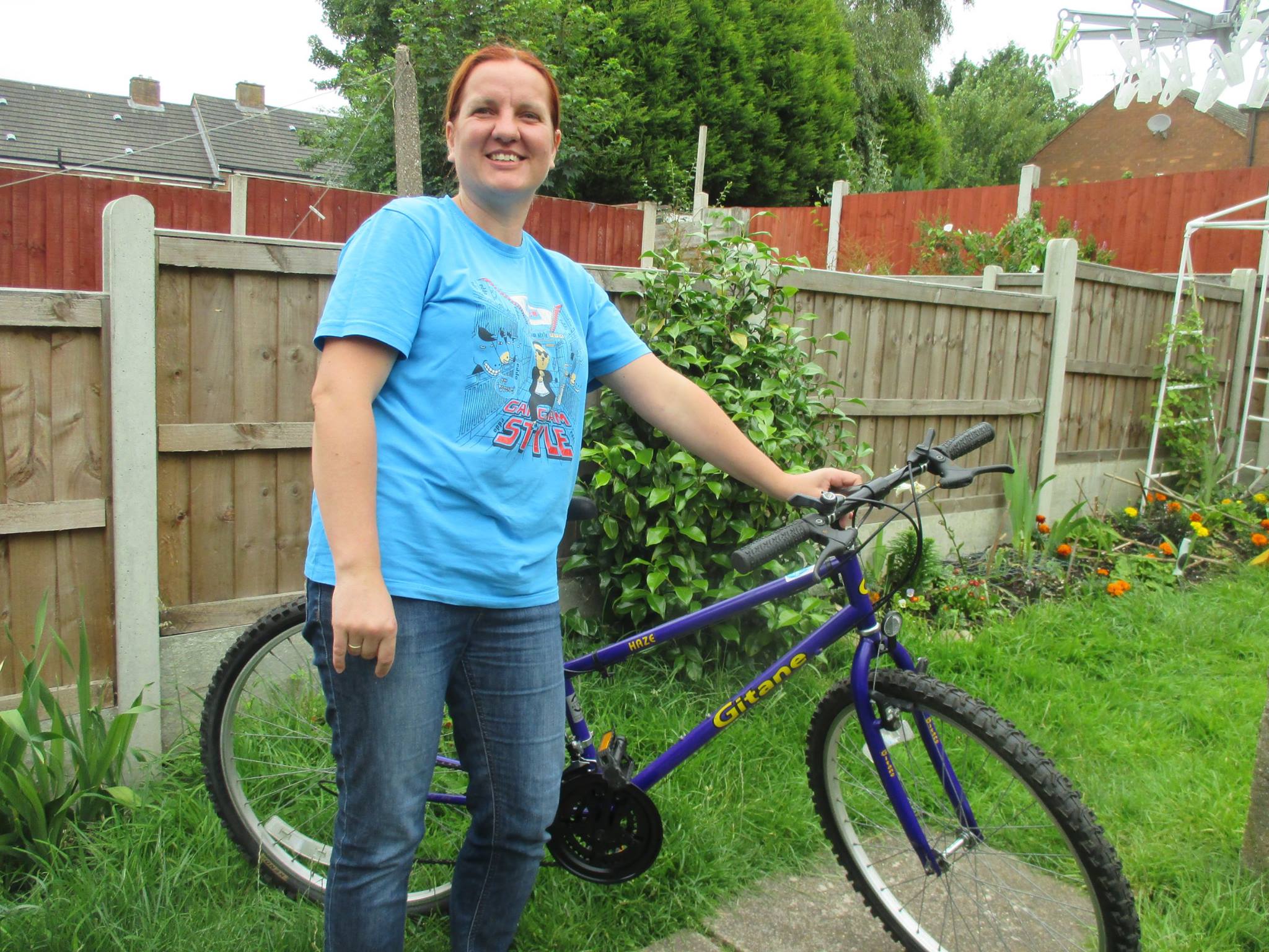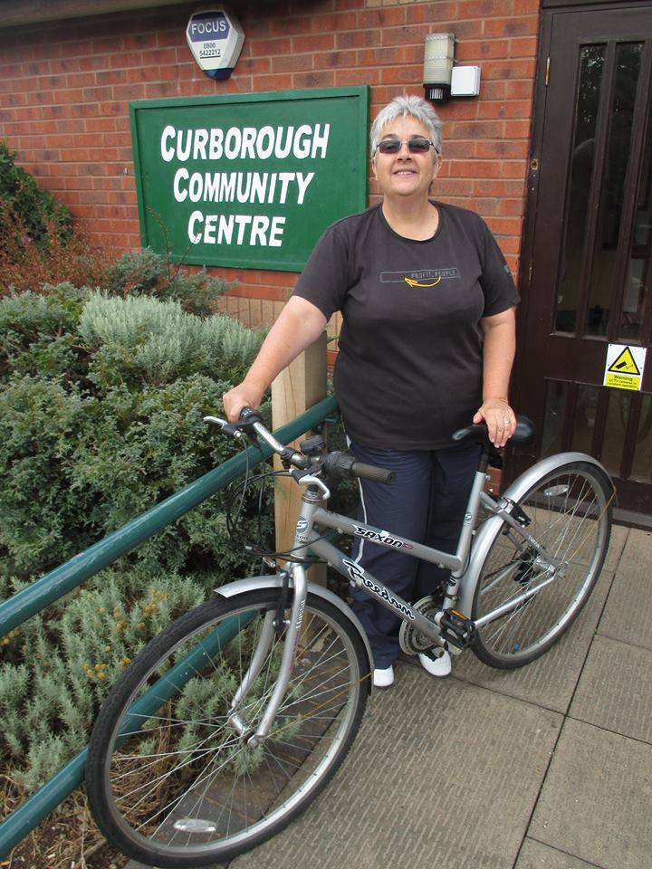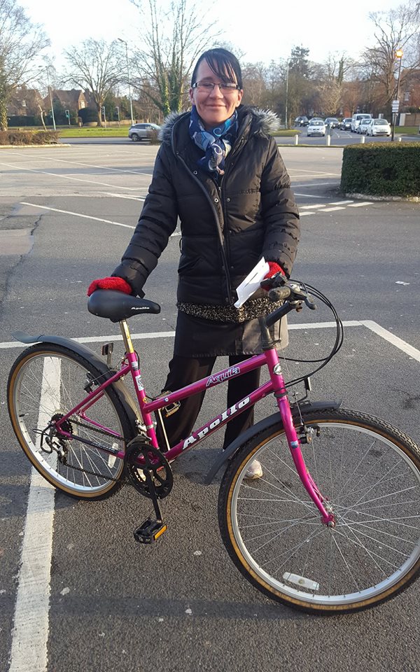 Lesley had a free long term loan bike and lessons to give her confidence to ride it.