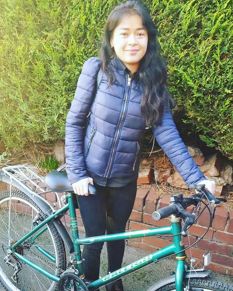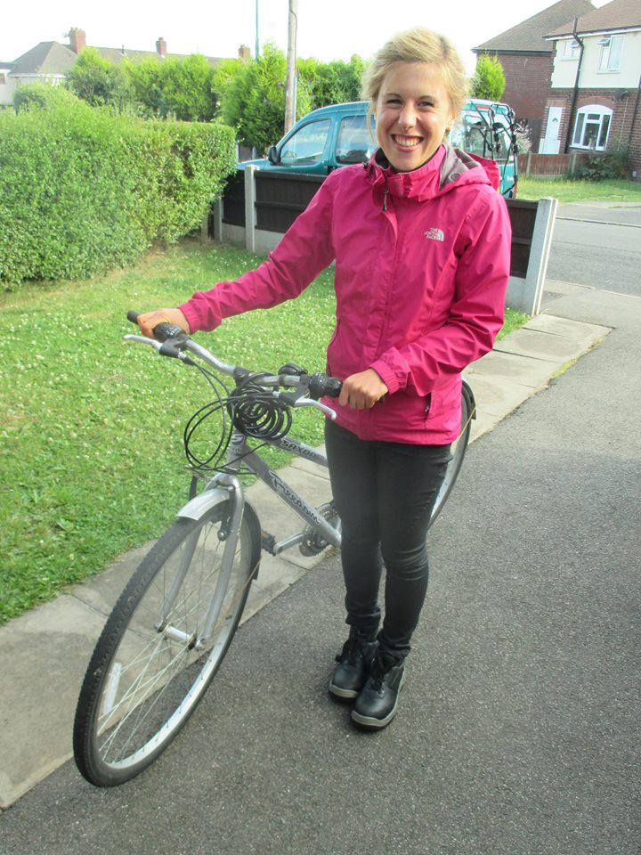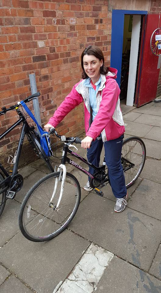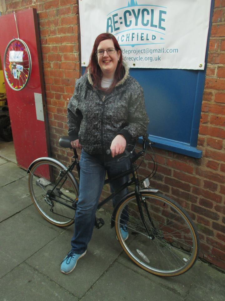 Manon from France had started a month long internship with Faurecia at Fradley and was walking there each day from Lichfield. She was happy to receive the bike and a lock for the duration of her stay here.