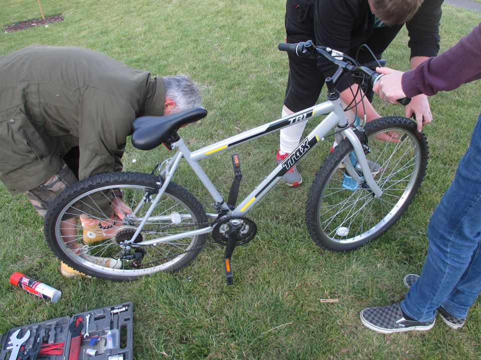 Kyle needed to get his bike fixed to ride to work in Fradley. We replaced his broken rear derailleur, fixed his bottom bracket and put a new tube in one of the tyres. We also gave him a track pump. All for free and with the promise of ongoing support should he want it.
