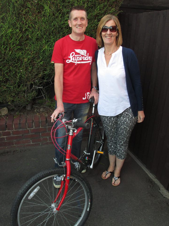 Terry received this Dawes mountain bike having had his stolen from outside the HSBC bank in Lichfield. He uses it to cycle to work in Fradley instead of walking there.