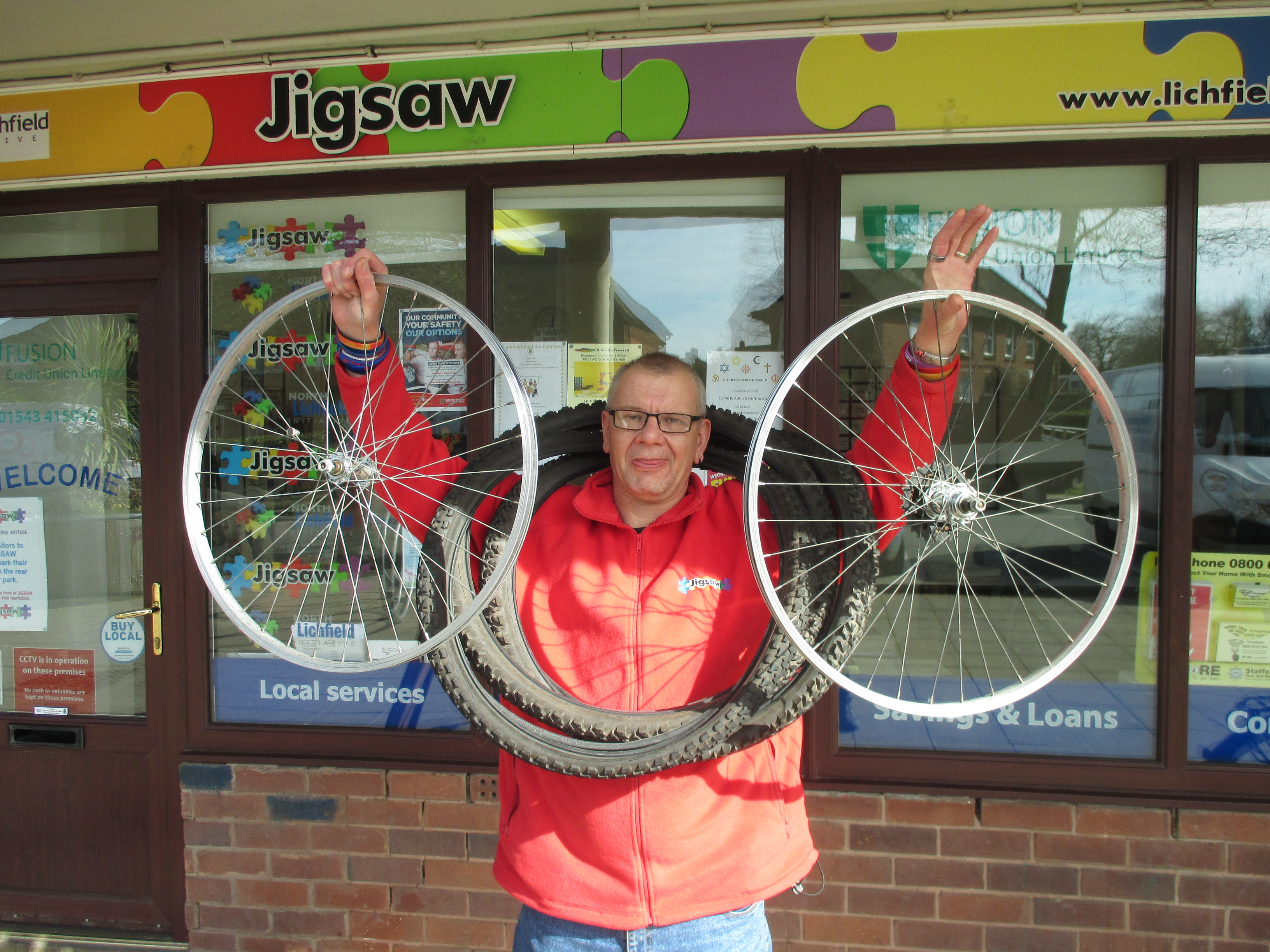 Tony, a volunteer at Jigsaw for North Lichfield Initiative contacted us to ask about parts to build up a bike. He had been given a frame and wanted a pair of wheels and some tyres.